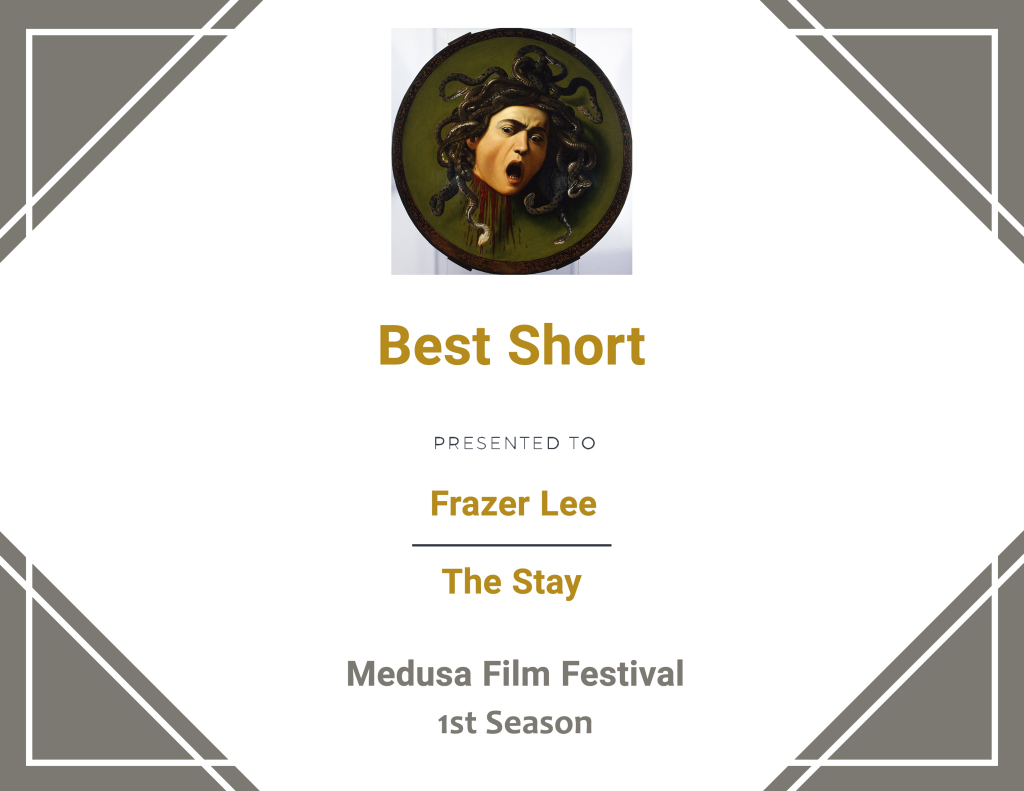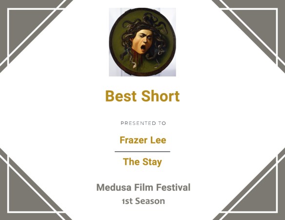 Honoured to receive the Best Short Award for The Stay. Thanks to all who helped make the movie & to all at Medusa Film Festival 2021!