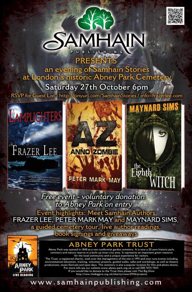 And my publisher, Samhain Horror, will be in the dealers’ room all weekend with a coffin load of scary books.